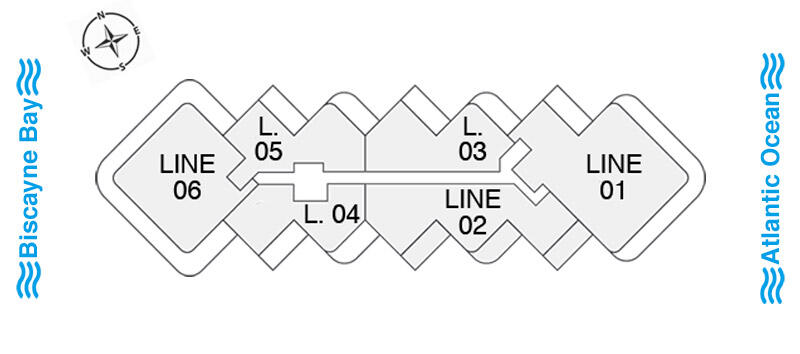 | Línea 01 Nvl 4-10 | 4 Hab+Den / 5 Baños (596M2) |